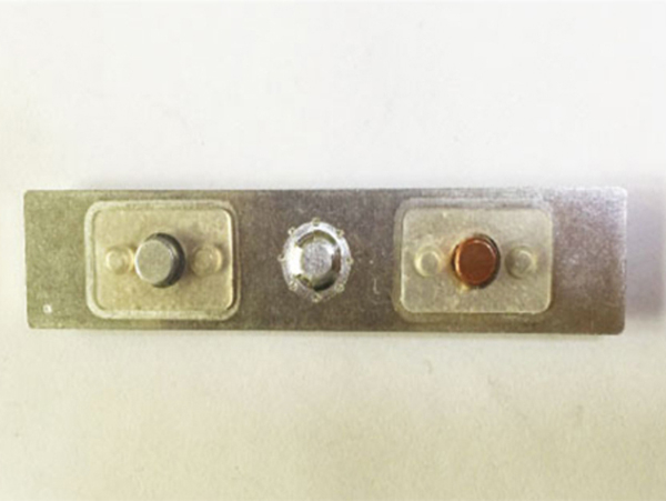 我公司通過(guò)自主開(kāi)發(fā)了兩(liǎng)種(zhǒng)锂電池連接的銅鋁複合材料。銅鋁複合基柱材料和銅鋁複合過(guò)渡片。基柱材料:由3mm的銅材和10mm的鋁闆複合制成(chéng)銅鋁複合基柱材料,完成(chéng)銅材負極的銅集爾相聯,而鋁和外鋁闆相聯,形成(chéng)電池組兩(liǎng)個外露電極均爲鋁材可以采用正常的激光焊接工藝完成(chéng)連接;連接片材料:在鋁闆中間複合一條10mm作用的銅帶,銅帶通過(guò)銅鉚釘和内部的銅集爾相聯,兩(liǎng)側的鋁闆完成(chéng)單體電池之間的串并聯。