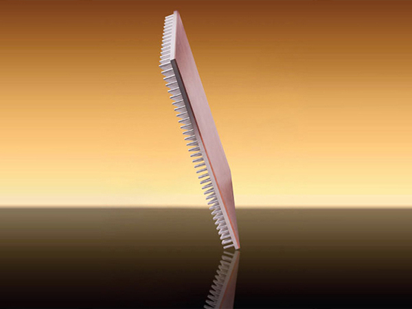 我公司自主的銅鋁複合散熱器,通過(guò)數值模拟計算,完成(chéng)銅層厚度和鋁層齒高、齒寬、齒間隙等的模拟,通過(guò)公司半熔态軋制複合的工藝制備出了大功率的銅鋁複合散熱器。